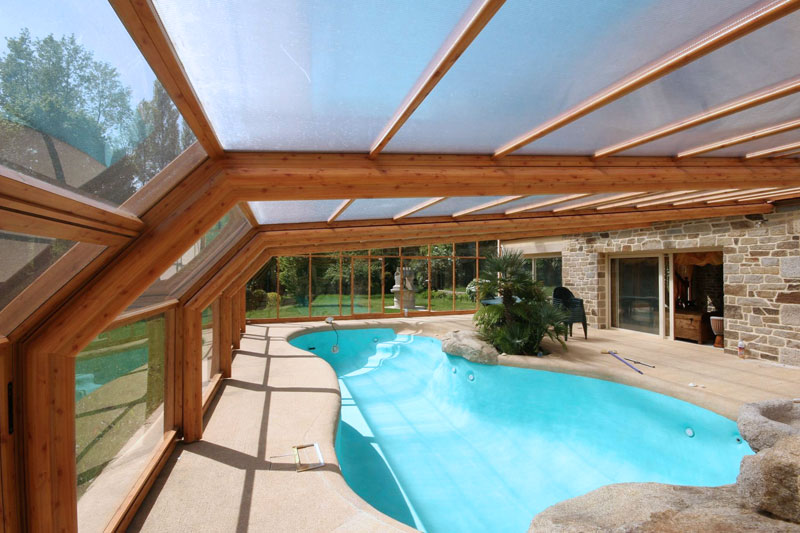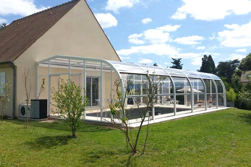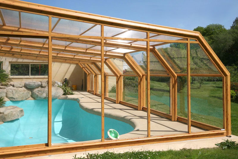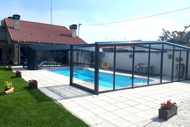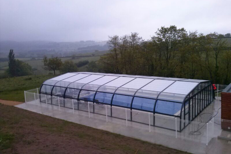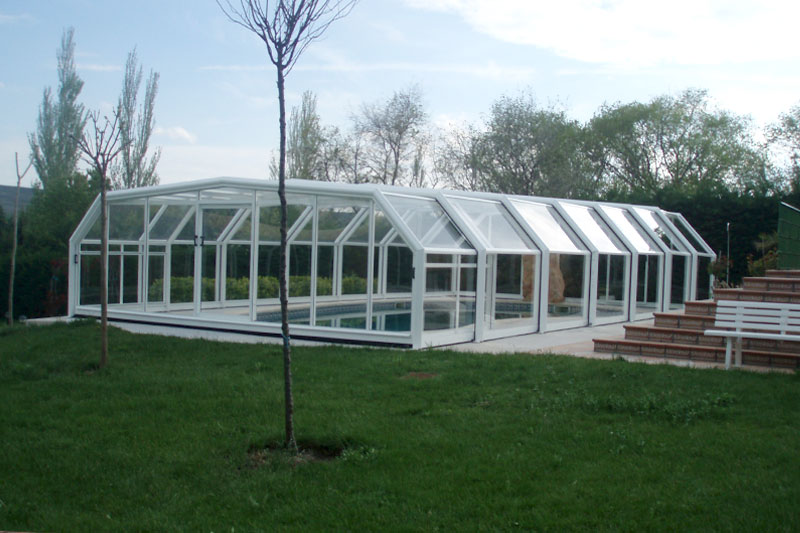 Este modelo de cubierta alta y fija de estructura permite crear un espacio cálido y acogedor al mismo tiempo que prolonga el uso y disfrute de la piscina, eleva la temperatura ambiente en su interior y ahorra en el mantenimiento del agua.