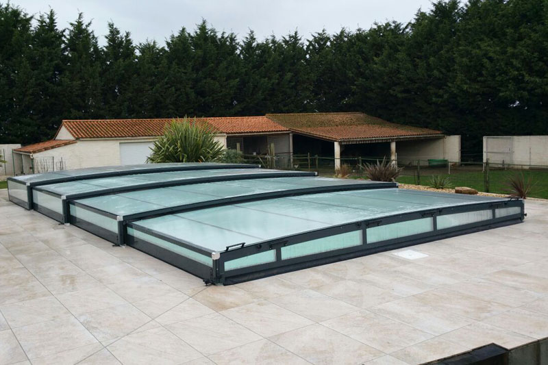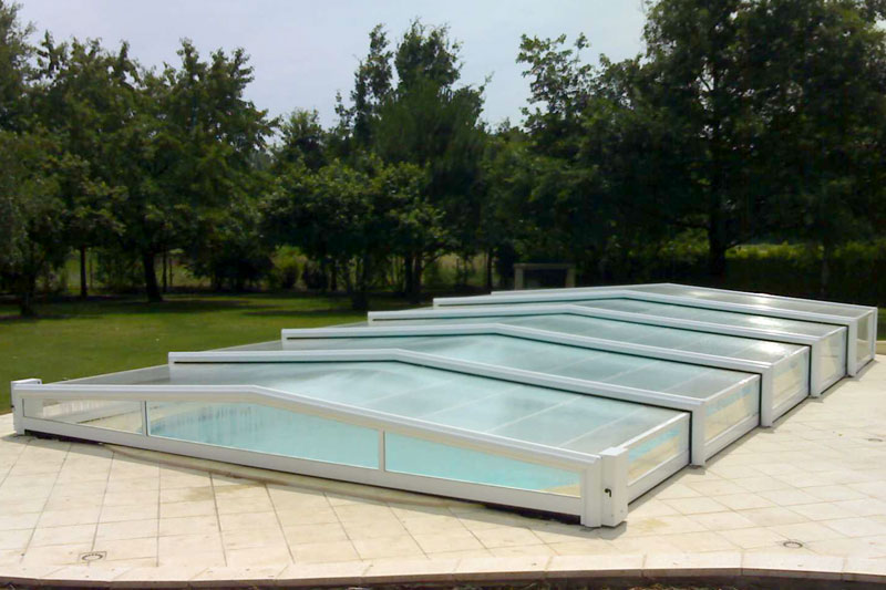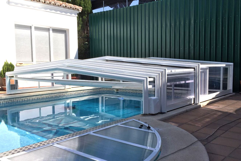 Proteja su piscina de la lluvia, suciedad, hojas, insectos, etc. Nuestras cubiertas telescópicas de baja altura son ideales para disfrutar de su piscina durante todo el año.