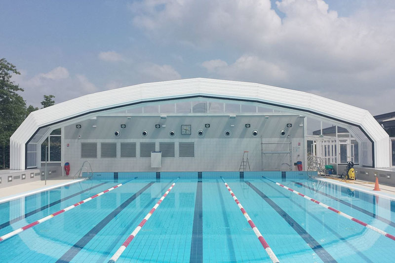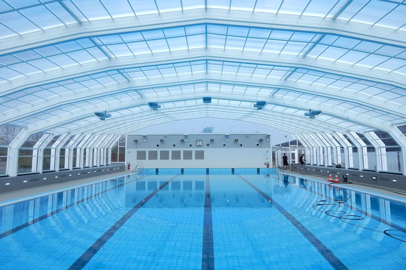 Cubiertas de grandes dimensiones ideales para lugares públicos. Proteja su piscina de la lluvia, suciedad, hojas, insectos, etc. Nuestras cubiertas fijas o móviles son ideales para disfrutar de su piscina durante todo el año.