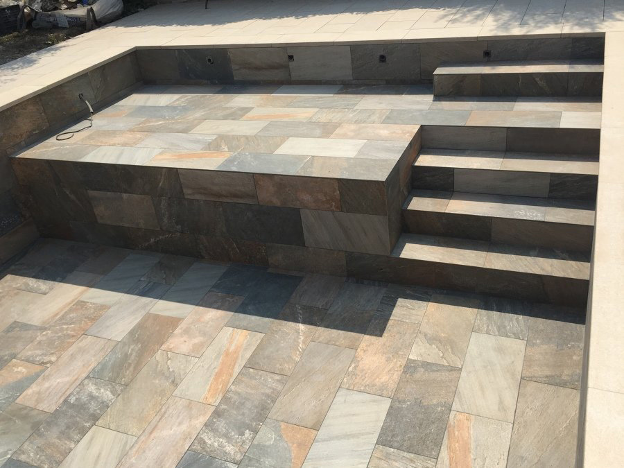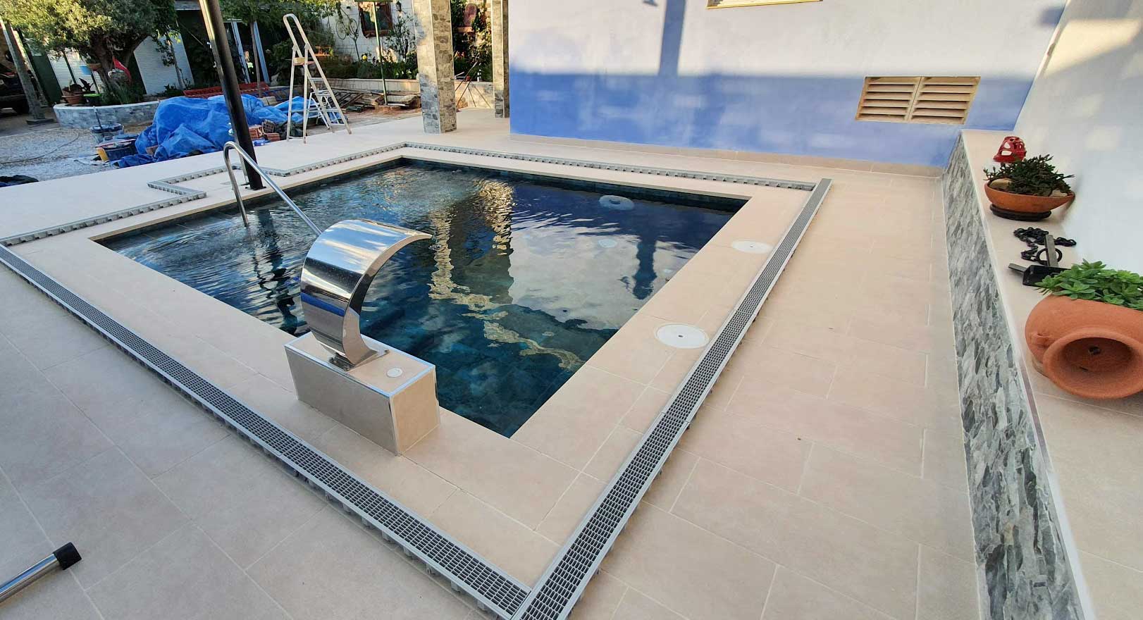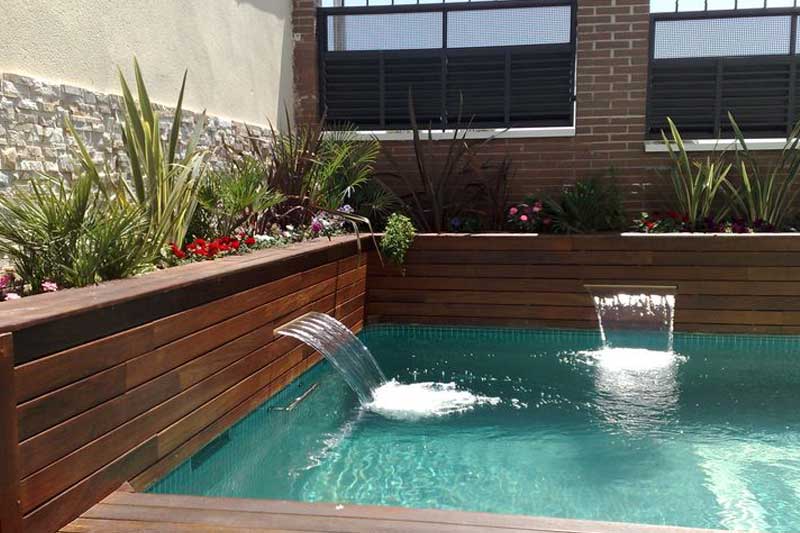 Con un sistema de construcción de hormigon armado y una lamina fina de alta calidad con base PVC como revestimiento, es una opción económica, práctica y versátil.