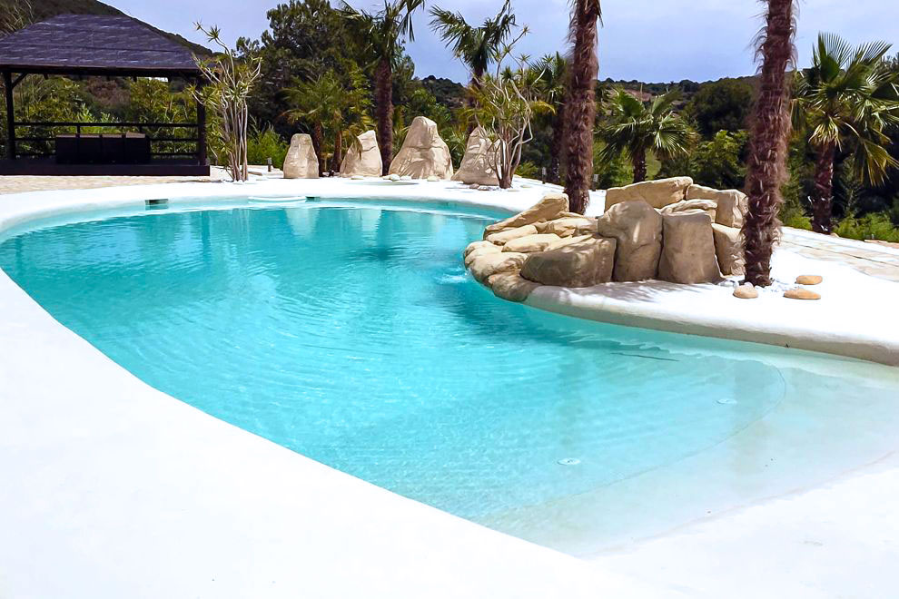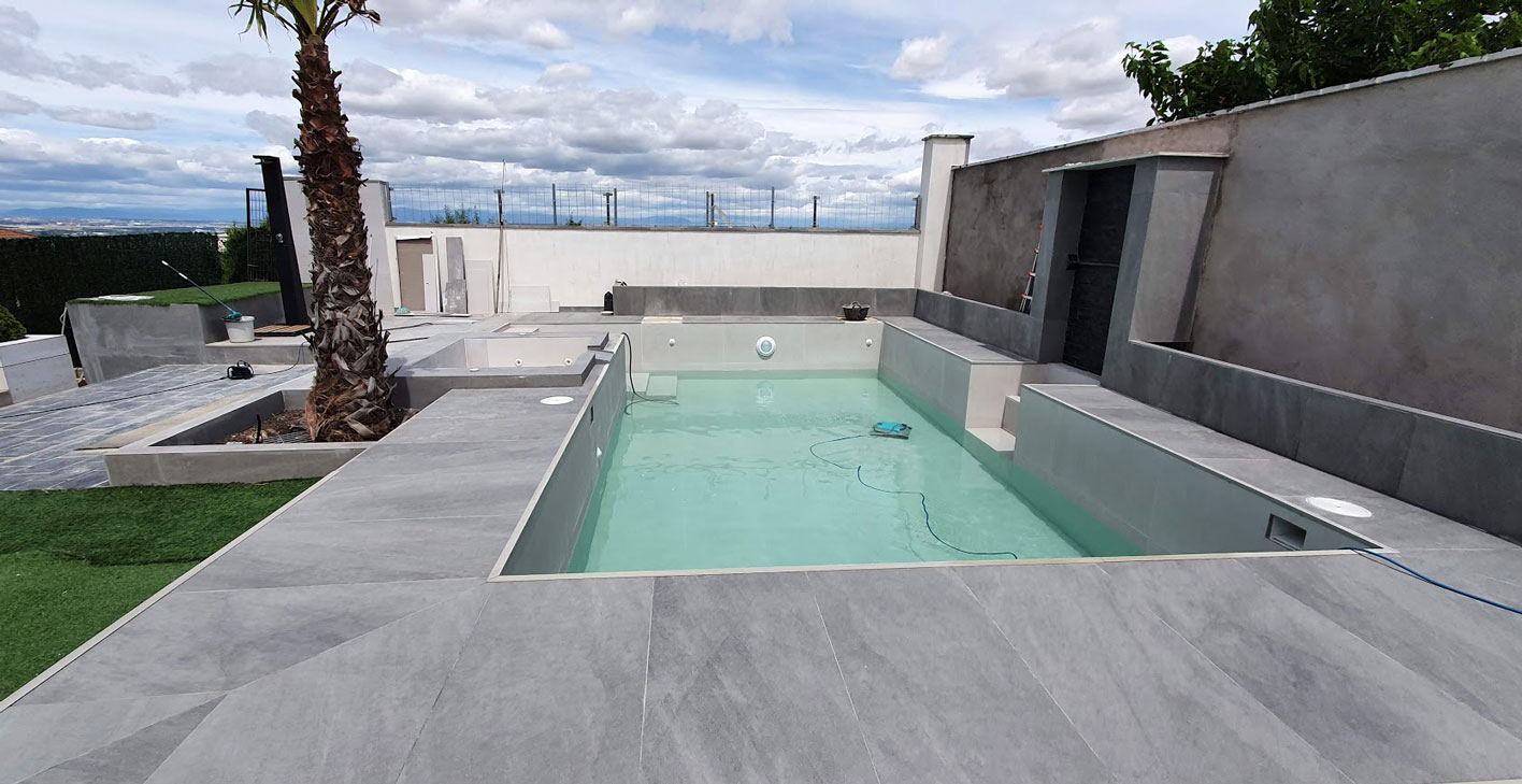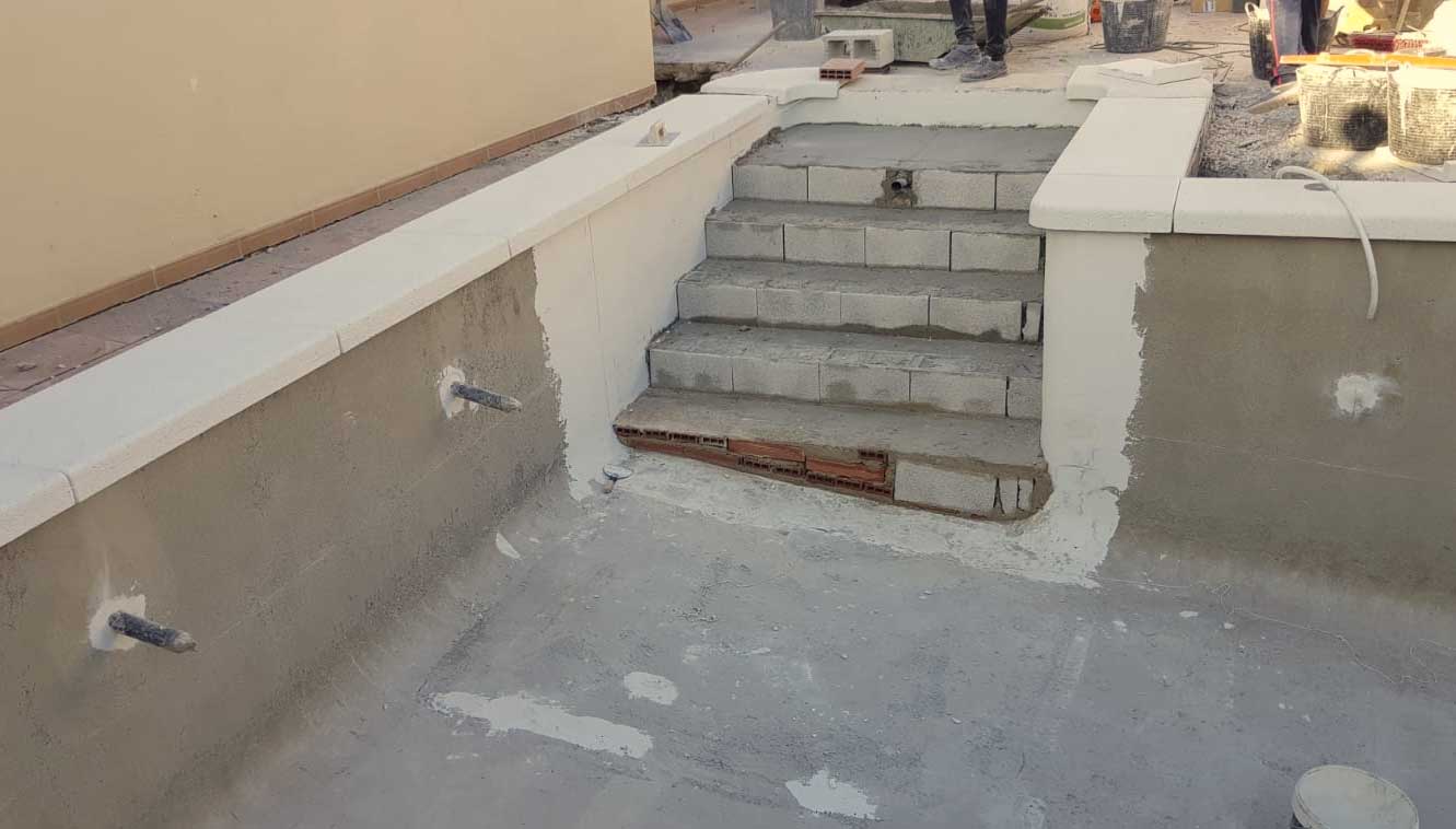 Construidas con hormigon gunitado y revestimiento de gresite o bloques de hormigón., siendo su ventaja la resistencia, durabilidad y la personalización de tamaño y forma.