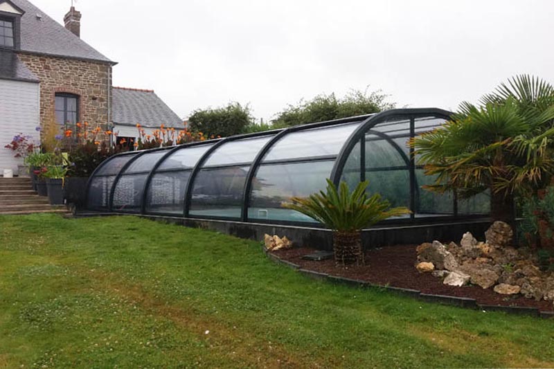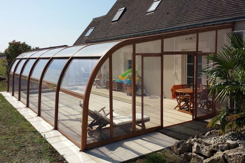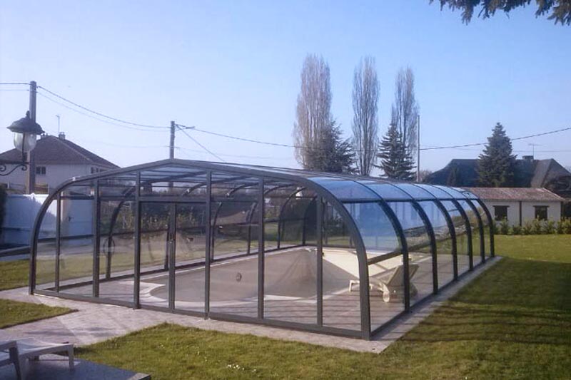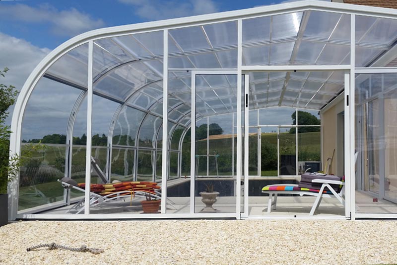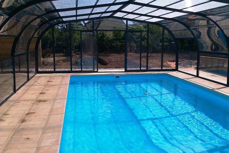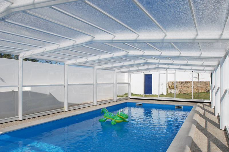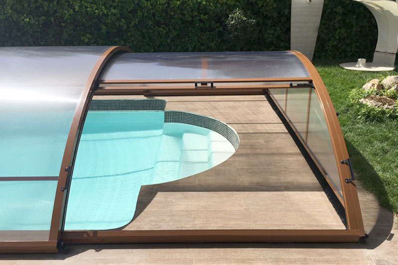 Este modelo de cubierta alta y fija de estructura permite crear un espacio cálido y acogedor al mismo tiempo que prolonga el uso y disfrute de la piscina, eleva la temperatura ambiente en su interior y ahorra en el mantenimiento del agua.