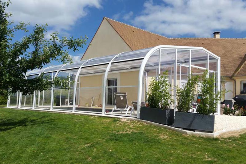 Proteja su piscina de la lluvia, suciedad, hojas, insectos, etc. Nuestras cubiertas telescópicas de baja altura son ideales para disfrutar de su piscina durante todo el año.