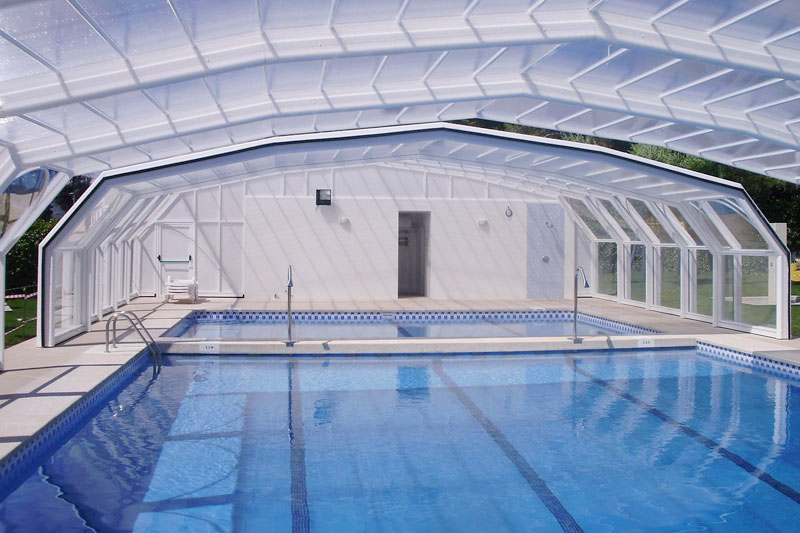 Cubiertas de grandes dimensiones ideales para lugares públicos. Proteja su piscina de la lluvia, suciedad, hojas, insectos, etc. Nuestras cubiertas fijas o móviles son ideales para disfrutar de su piscina durante todo el año.