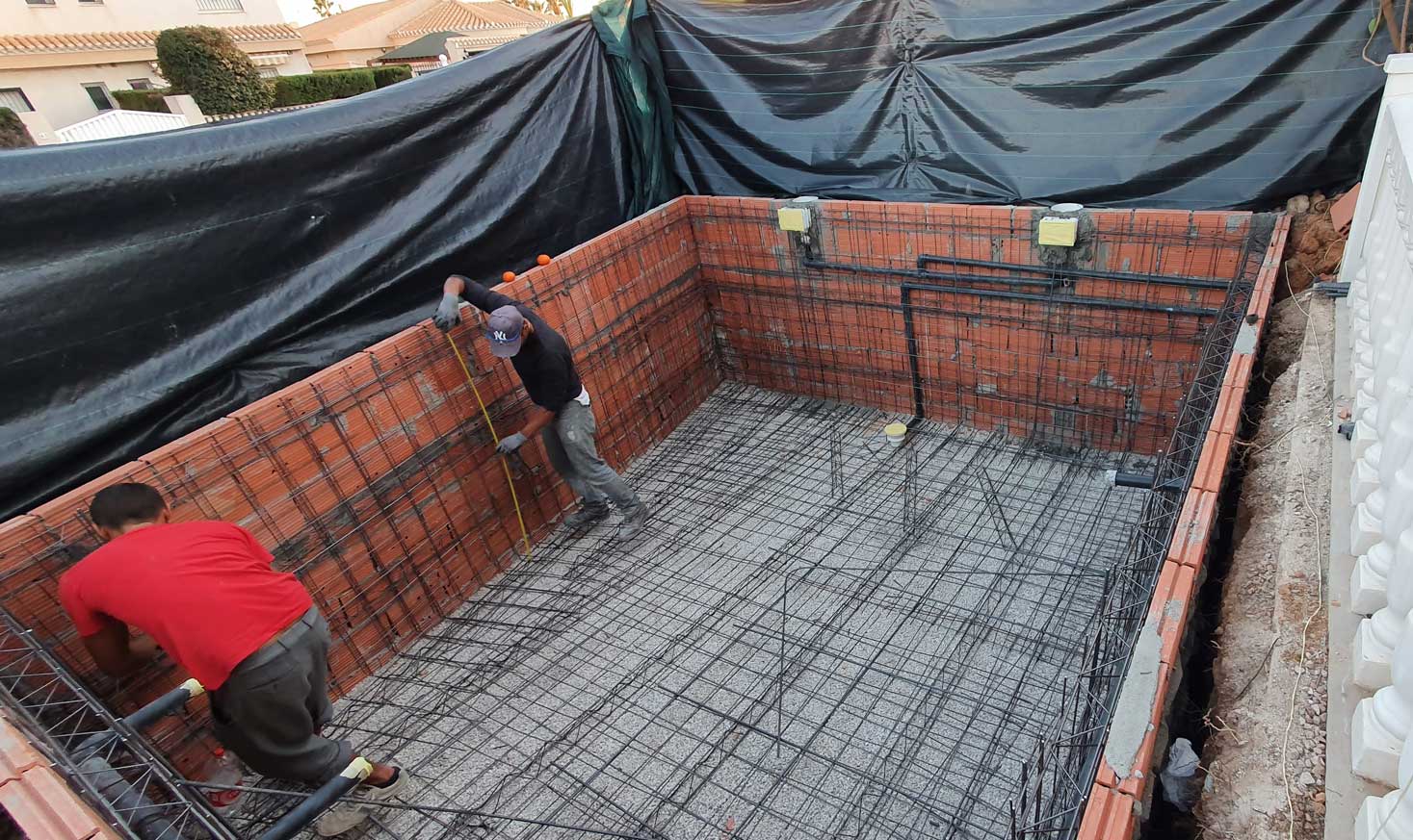 Construidas con hormigon gunitado y revestimiento de gresite o bloques de hormigón., siendo su ventaja la resistencia, durabilidad y la personalización de tamaño y forma.