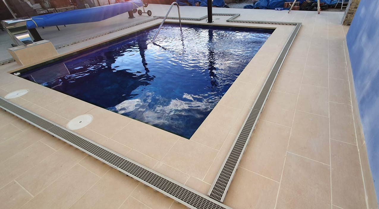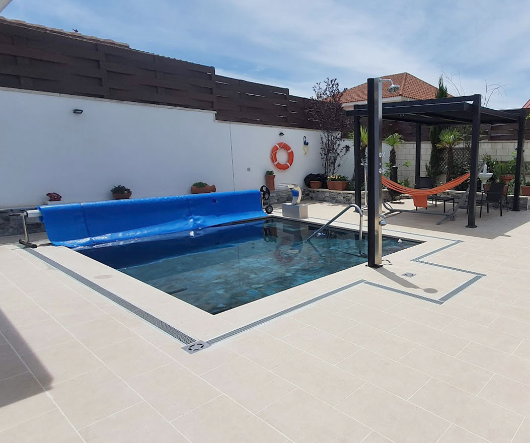 Con un sistema de construcción de hormigon armado y una lamina fina de alta calidad con base PVC como revestimiento, es una opción económica, práctica y versátil.